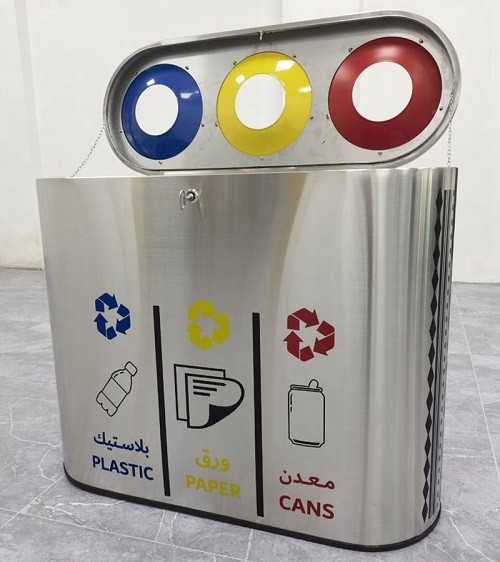 We're so proud that our clients from Saudi Arabia feedback return with the pictures of the stainless steel recycle bins for their indoor usage. In 2024, our client ordered 130 pieces of the stainless steel recycle bins for their projects.It's extremely robust and durable for commercial use, indoors.Well build construction helps to prevent it from getting damaged.Highly pigmented paint prevents chipping off or fading over time. We can also accept differet bespoke items according to your requirements if you have your own special design.