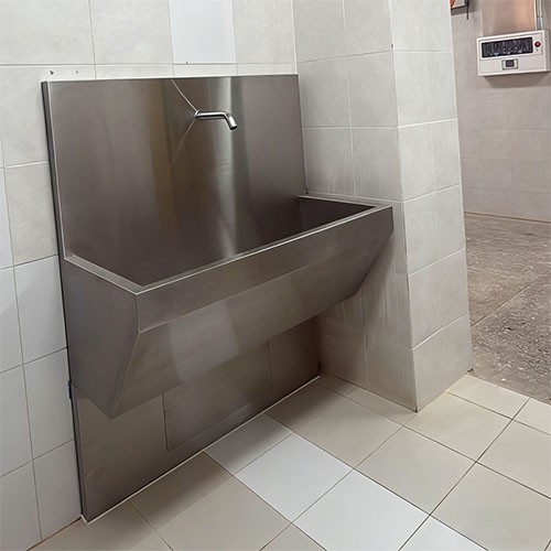 The stainless steel surgical scrub sinks are bespoke items for our client.The REHABILITATION OF THEMITTAPHAB HOSPITAL project is located in Laos.The stainless steel surgical scrub sink designed for sterile environments like operating rooms. The scrub sink was specially developed primarily for pre-operative rooms. It is made of AISI 304 stainless steel.It meets the stringent requirements for equipment designed for clean areas.The scrub sink is equipped with sensor-operated mixers for touchless hygiene solutions . Features a deep trough and backsplash to contain splashes during thorough hand and forearm scrubbing.